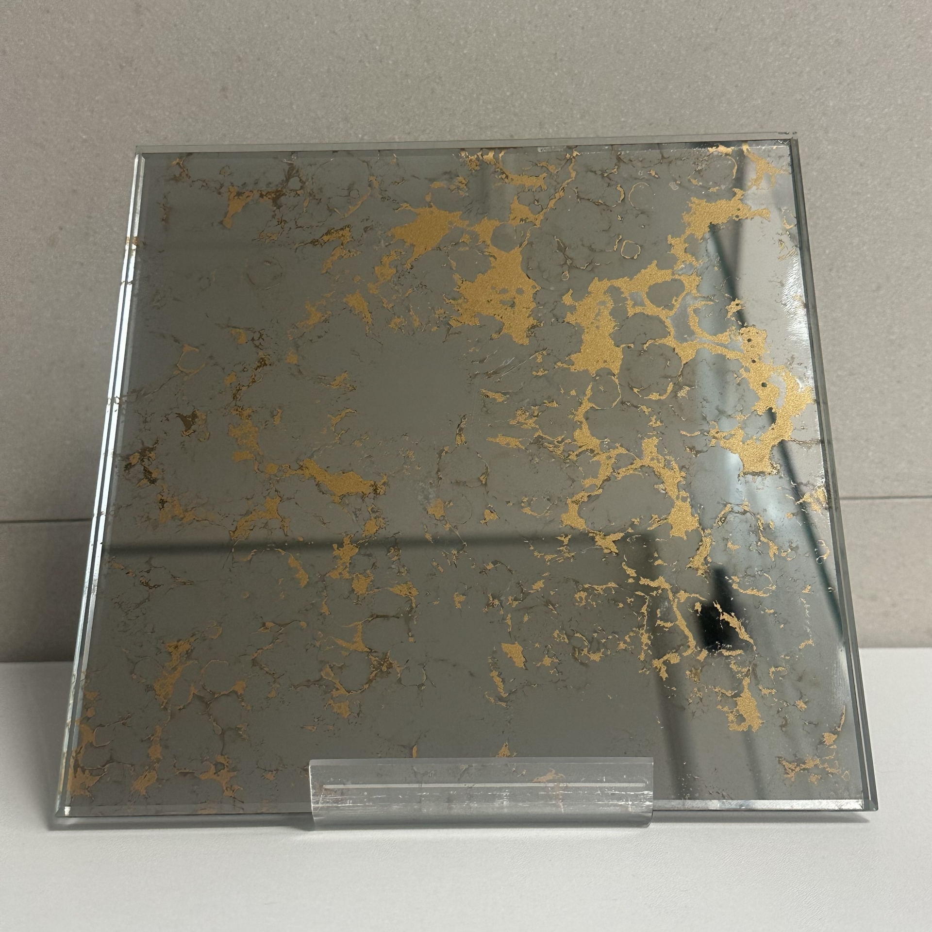 Le miroir vieilli Venere se distingue par son décor nuagé intensément oxydé qui crée une profondeur visuelle spectaculaire. Son effet ancien marqué et ses variations irrégulières captent la lumière et donnent immédiatement du caractère à un mur, une crédence ou un panneau décoratif. Chaque pièce est unique, offrant un rendu authentique et haut de gamme, aussi adapté aux intérieurs privés qu’aux hôtels, restaurants ou boutiques. Réalisé sur mesure par Mouton Esmard, avec livraison en Eure-et-Loir (28), Eure (27), Yvelines (78), Paris (75) et dans toute l’Île-de-France.